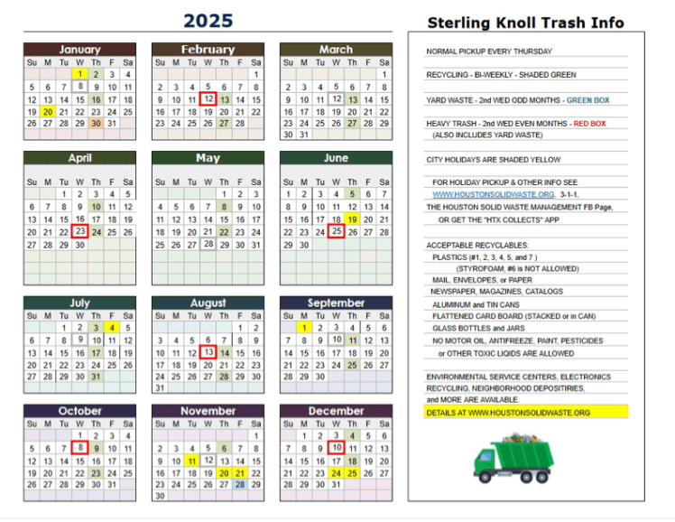 Also available as a PDF here – https://sterlingknolltx.com/wp-content/uploads/2025/02/2025-sk-trash-calendar-8×11-1.pdf